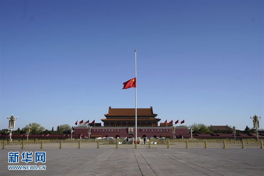 4月4日,北京天安門廣場降下半旗,表達對抗擊新冠肺炎疫情斗爭犧牲烈士和逝世同胞的深切哀悼。新華社記者 邢廣利 攝