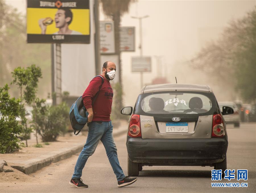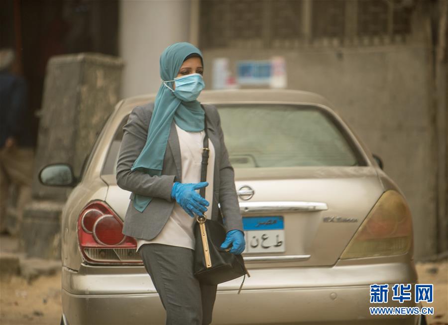 這是4月5日在埃及首都開(kāi)羅拍攝的戴口罩的行人。新華社記者鄔惠我攝