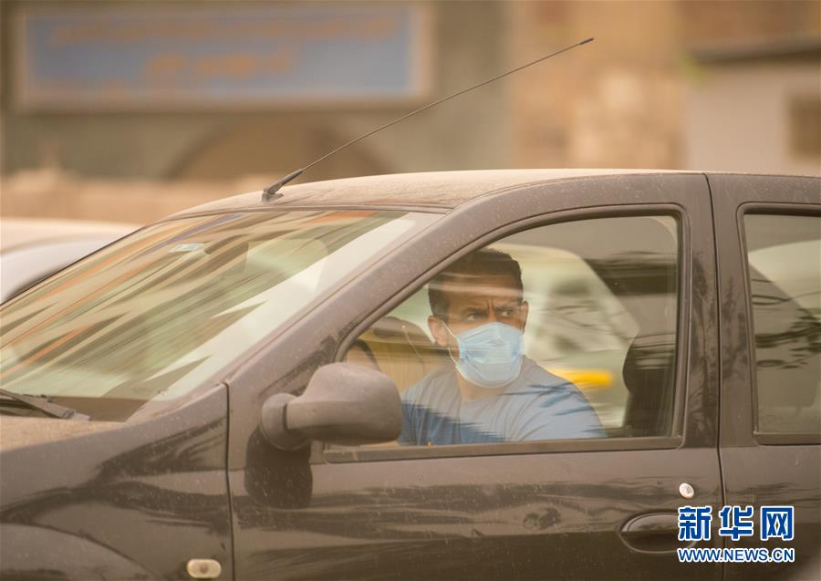 這是4月5日在埃及首都開(kāi)羅拍攝的戴口罩的司機(jī)。新華社記者鄔惠我攝