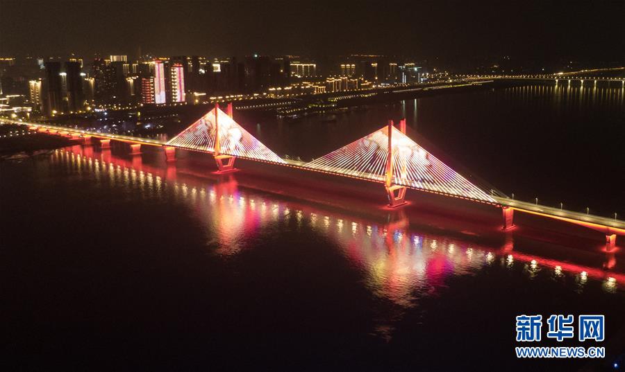 4月8日零時(shí)起,武漢市正式解除離漢離鄂通道管控措施,全市景觀(guān)照明開(kāi)啟(無(wú)人機(jī)拍攝)。新華社記者程敏攝