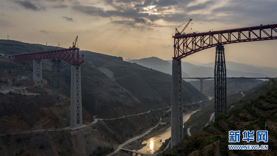 4月8日清晨,工人在中老鐵路元江特大橋上進(jìn)行鋼桁梁架設(shè)作業(yè)(無(wú)人機(jī)照片)。4月7日,中老鐵路全線重點(diǎn)控制性工程——元江特大橋迎來(lái)關(guān)鍵節(jié)點(diǎn),主橋鋼桁梁正式“邁”過(guò)154米高的主橋墩,這是世界同類鐵路橋梁第一高墩。元江特大橋位于云南省元江縣,采用上承式連續(xù)鋼桁梁跨越峽谷,全長(zhǎng)832.2米,建成后,其249米的主跨也將刷新國(guó)內(nèi)同類橋梁跨度紀(jì)錄。新華社記者江文耀攝