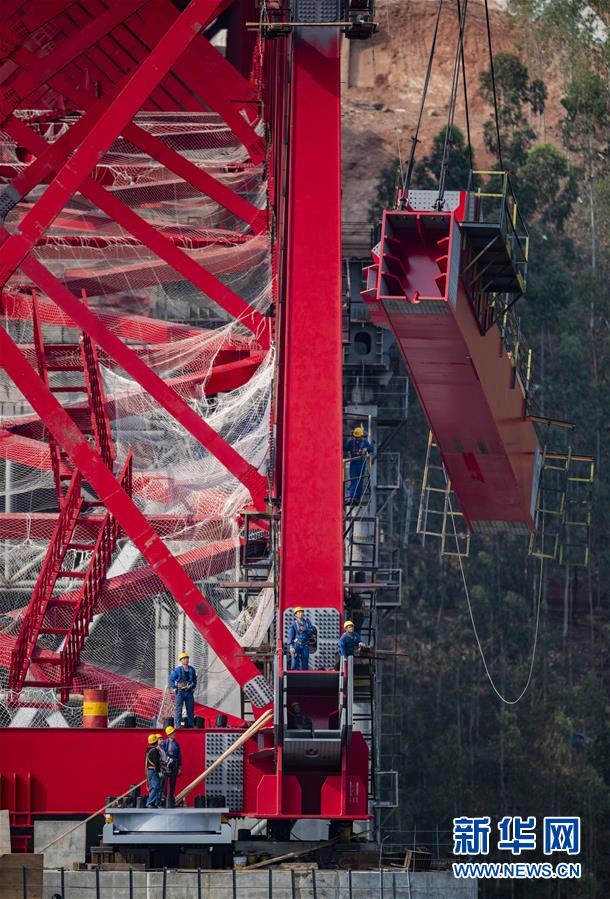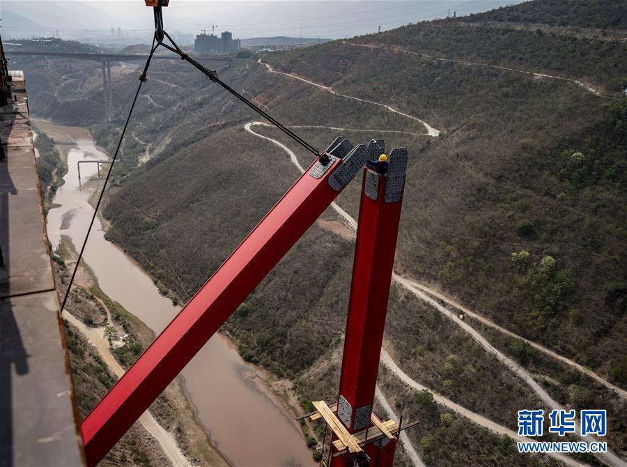 4月8日清晨,工人在中老鐵路元江特大橋上進(jìn)行鋼桁梁架設(shè)作業(yè)(無(wú)人機(jī)照片)。4月7日,中老鐵路全線重點(diǎn)控制性工程——元江特大橋迎來(lái)關(guān)鍵節(jié)點(diǎn),主橋鋼桁梁正式“邁”過154米高的主橋墩,這是世界同類鐵路橋梁第一高墩。元江特大橋位于云南省元江縣,采用上承式連續(xù)鋼桁梁跨越峽谷,全長(zhǎng)832.2米,建成后,其249米的主跨也將刷新國(guó)內(nèi)同類橋梁跨度紀(jì)錄。新華社記者江文耀攝