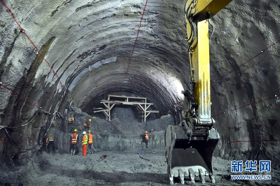 中鐵隧道局承建的玉溪新平隧道內(nèi),工人在掌子面進(jìn)行扒渣作業(yè)(4月11日攝)。新華社記者秦晴攝