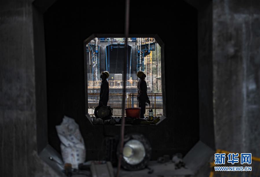 3月5日,工人在中老鐵路南溪河特大橋上施工。新華社記者江文耀攝