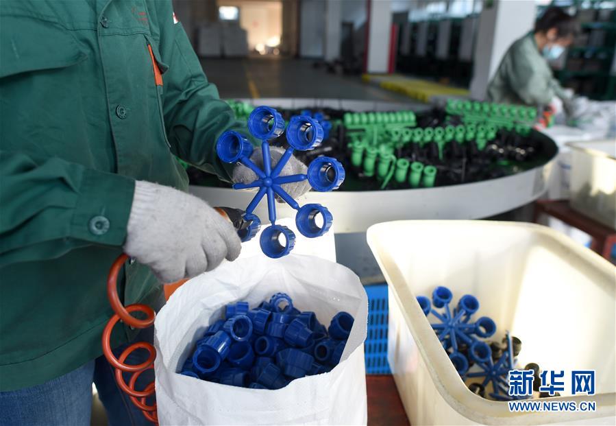 4月13日,員工在位于店口鎮(zhèn)的諸暨市風(fēng)帆管業(yè)有限公司注塑車間分揀自動化生產(chǎn)線上的管件。新華社記者韓傳號攝