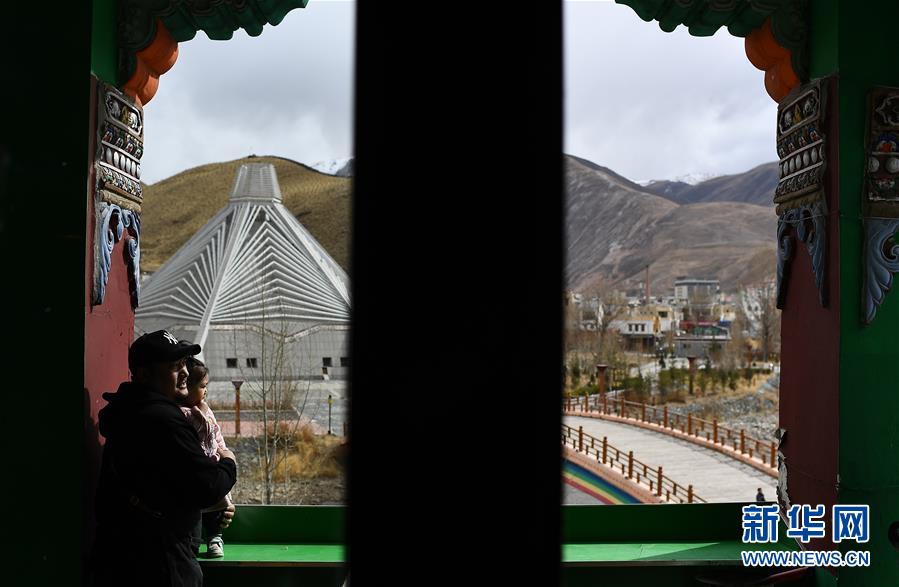 4月10日,才仁俄賽和女兒在餐廳門口。新華社記者張宏祥攝