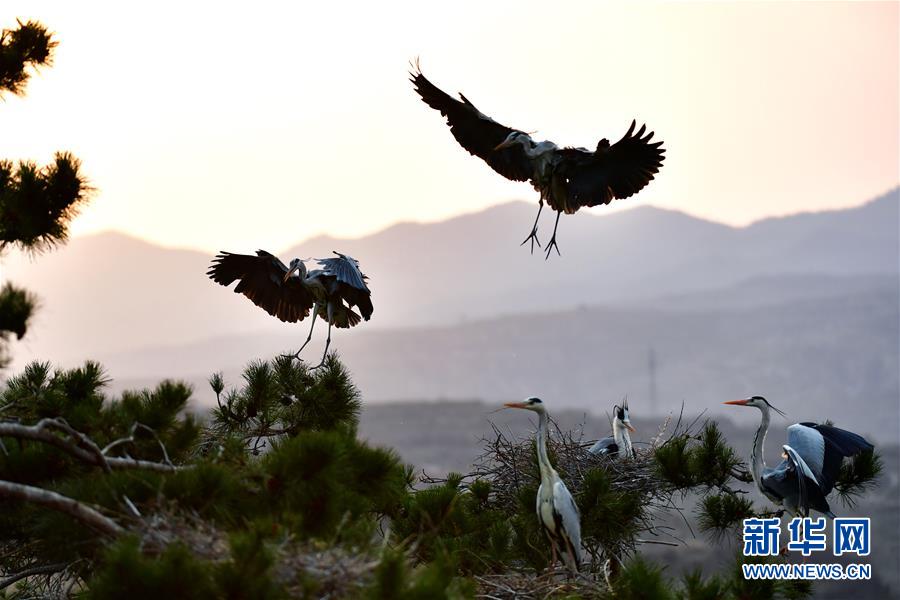 山西呂梁:蒼鷺舞林間
