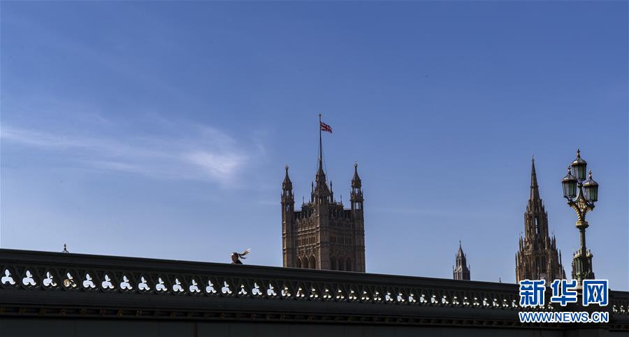 這是4月14日在英國倫敦拍攝的議會(huì)大廈前空蕩蕩的威斯敏斯特橋。新華社記者韓巖攝