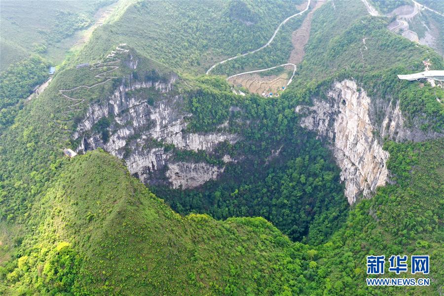 這是4月19日拍攝的中國(guó)樂(lè)業(yè)—鳳山世界地質(zhì)公園內(nèi)的大石圍天坑(無(wú)人機(jī)照片)。中國(guó)樂(lè)業(yè)—鳳山世界地質(zhì)公園位于廣西西北部,公園內(nèi)地質(zhì)遺跡包括天坑群、天窗群、鐘乳石等,具有重要的科研價(jià)值和美學(xué)觀賞價(jià)值。