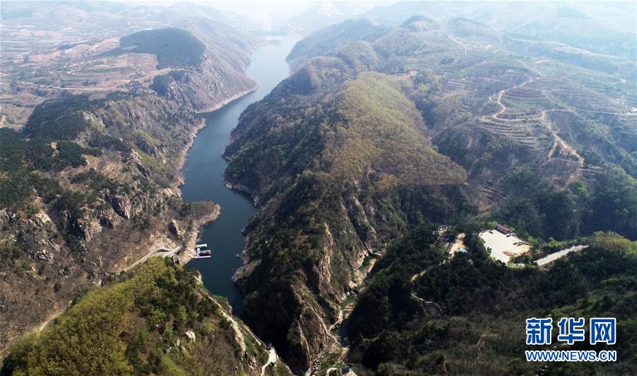 4月18日拍攝的五蓮縣九仙山春色(無(wú)人機(jī)照片)。春日漸暖,山東省五蓮縣九仙山的奇山秀石在蒼翠綠植的環(huán)抱下一派春意盎然。新華社記者王凱攝
