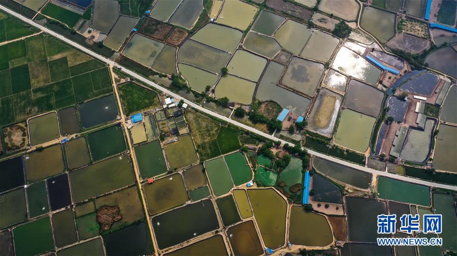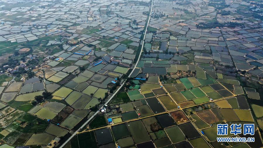 新華社照片,合浦(廣西),2020年4月21日鳥瞰廣西合浦春色這是4月21日拍攝的合浦縣境內(nèi)的春日風(fēng)光(無人機(jī)照片)。暮春時(shí)節(jié),從空中俯瞰廣西北海市合浦縣大地,河流、稻田、蝦塘、道路、村莊星羅棋布、色彩斑斕,美不勝收。新華社記者張愛林?jǐn)z