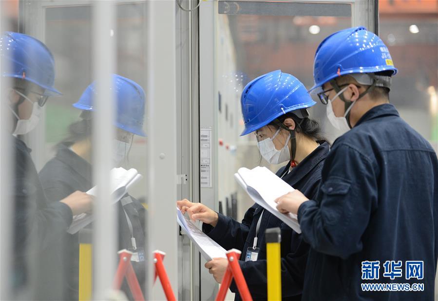 4月24日,技術(shù)人員在施工現(xiàn)場進(jìn)行設(shè)備檢查。新華社記者韓曉雨攝