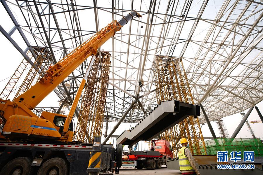 4月24日,中鐵建設集團的工人在星火站施工。北京星火站是京沈高鐵的始發(fā)站,站房總建筑面積18.3萬平方米,將于2020年底完工。目前正在進行混凝土主體結構收尾工作,鋼結構主體正在緊張施工,即將完工。新華社記者邢廣利攝