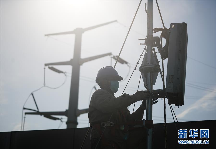 4月25日,在南京220千伏城南河變電站屋頂,工人在架設(shè)5G設(shè)備。當(dāng)日,三大通信運營商的2座5G、3座4G基站建設(shè)工作在南京220千伏城南河變電站屋頂有序展開。在變電站內(nèi)建設(shè)基站可有效利用電網(wǎng)資源,縮短建設(shè)周期,節(jié)約建設(shè)成本。新華社記者季春鵬攝