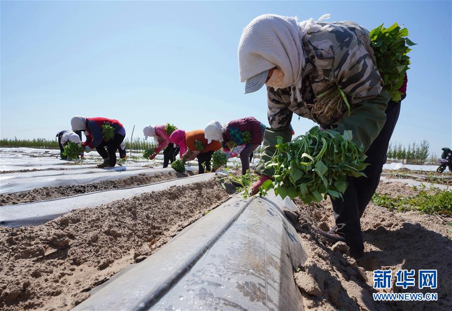 4月25日,灤南縣東黃坨鎮(zhèn)新戶村農(nóng)民給栽植好的煙薯秧苗培土。近年來,河北省灤南縣利用當(dāng)?shù)赝寥篮蜌夂蛱攸c(diǎn),引導(dǎo)農(nóng)民因地制宜發(fā)展煙薯種植,取得良好效果。目前該縣煙薯種植面積達(dá)3萬多畝,每畝年收入達(dá)5000多元。新華社記者楊世堯攝