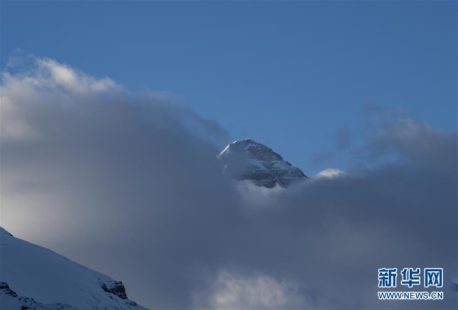 日出時,珠峰籠罩在云霧里(4月28日攝)。新華社記者晉美多吉攝