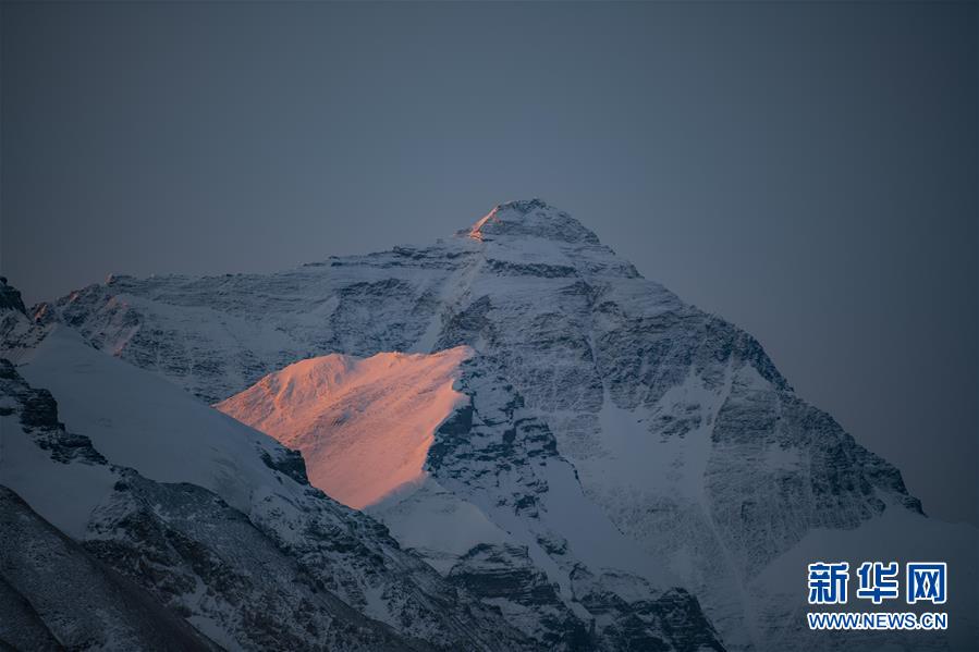 日出時分拍攝的珠峰(4月21日攝)。新華社記者旦增尼瑪曲珠攝