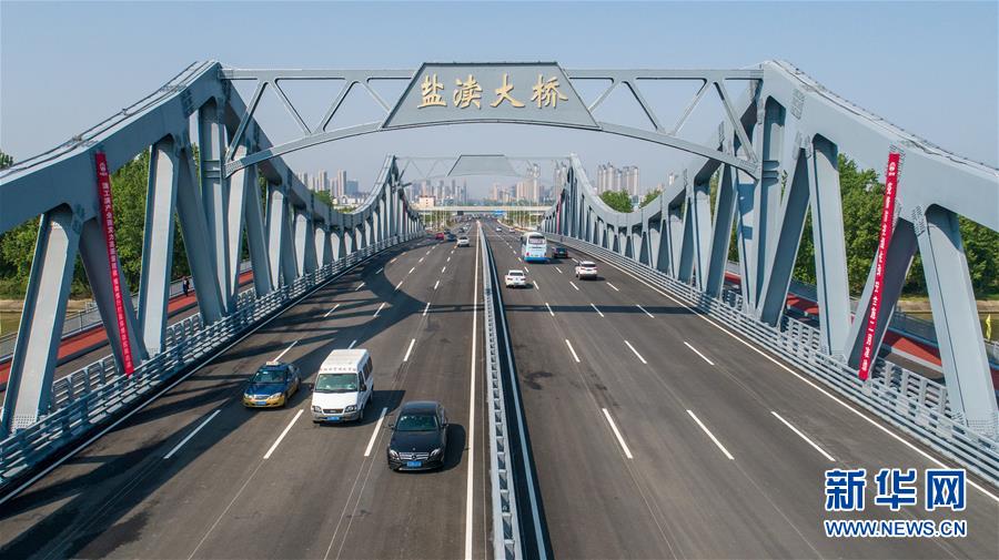 這是4月28日拍攝的江蘇省鹽城市鹽瀆大橋(無(wú)人機(jī)照片)。4月28日,位于江蘇省鹽城市的鹽瀆大橋正式通車(chē)。據(jù)介紹,鹽瀆大橋連接鹽城市鹽南高新區(qū)與河?xùn)|新城開(kāi)發(fā)區(qū),通車(chē)后,將緩解附近群眾跨區(qū)繞行的問(wèn)題,提供出行便利。新華社記者李博攝