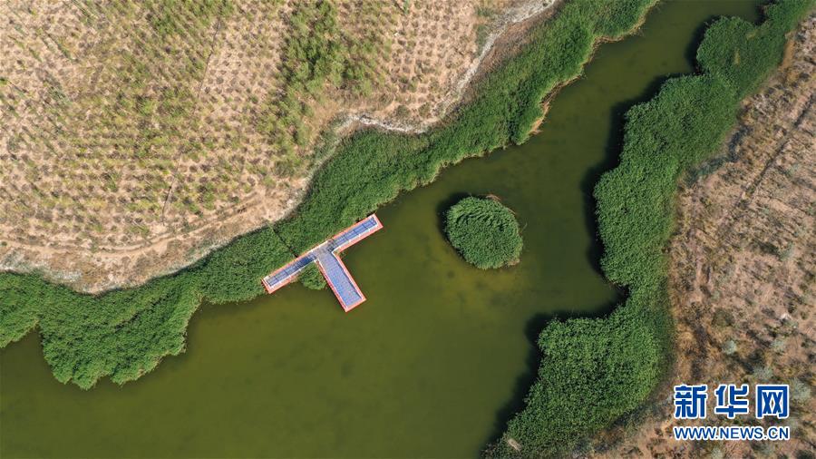 這是5月2日拍攝的寧夏天湖國家濕地公園(無人機(jī)照片)。寧夏天湖國家濕地公園位于寧夏中衛(wèi)市中寧縣長山頭農(nóng)場(chǎng),公園總面積1791公頃,其中濕地面積1649公頃,是寧夏境內(nèi)原始自然資源保存最完整的濕地之一。濕地公園內(nèi)動(dòng)植物資源十分豐富,被譽(yù)為黃土旱塬上的“明珠湖”。 新華社記者 王鵬 攝