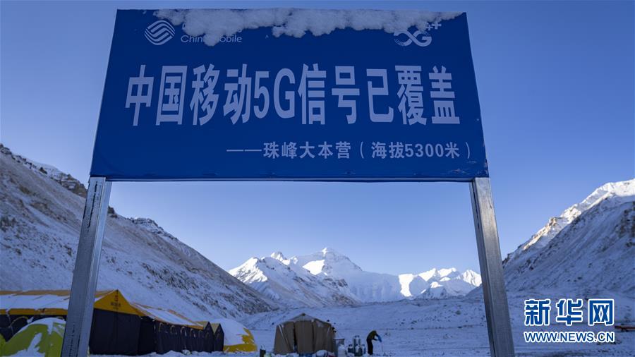 珠峰大本營開通了5G信號(5月3日攝)。新華社記者普布扎西攝