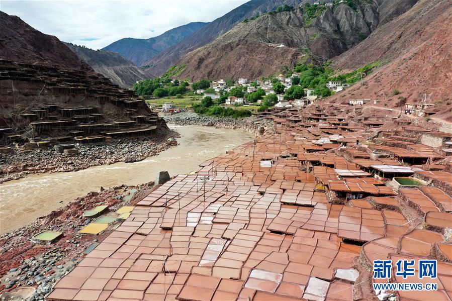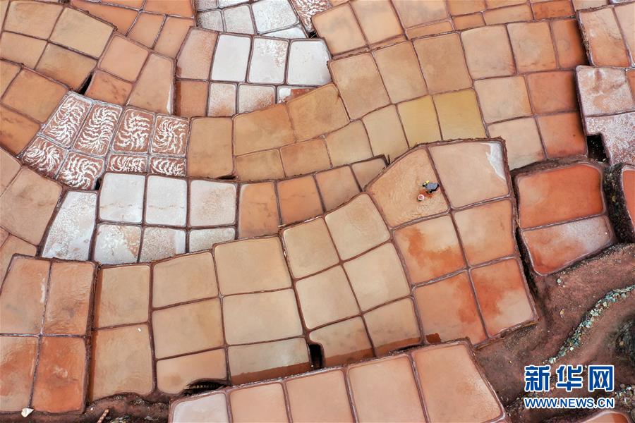 西藏芒康縣納西民族鄉(xiāng)加達(dá)村村民在鹽田里勞作(5月4日攝,無(wú)人機(jī)照片)。位于西藏昌都市芒康縣瀾滄江畔的古鹽田,至今仍保持最原始的手工曬鹽方式。據(jù)史料記載,早在唐朝時(shí)期這里就開始曬鹽。鹽田在瀾滄江兩岸依山而建,層層疊疊,錯(cuò)落有致。新華社記者王澤昊攝
