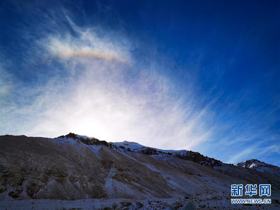 這是珠峰大本營(yíng)上空的彩虹(5月3日攝)。珠穆朗瑪峰國(guó)家級(jí)自然保護(hù)區(qū)是以保護(hù)高山生態(tài)系統(tǒng)及其相鄰的高原自然景觀、豐富獨(dú)特的生物多樣性、具有重大科學(xué)價(jià)值的地史遺跡以及藏族歷史文化遺產(chǎn)為主的綜合性自然保護(hù)區(qū)。保護(hù)區(qū)內(nèi)生物資源豐富,景色壯美。新華社記者沈虹冰攝