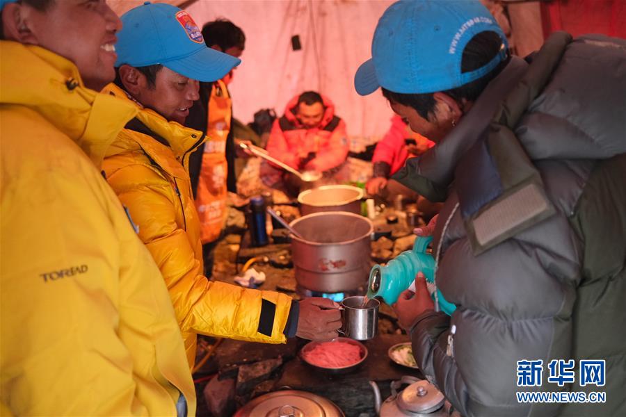 這是過(guò)渡營(yíng)地的帳篷餐廳(5月8日攝)。珠峰過(guò)渡營(yíng)地海拔5800米,是連接前進(jìn)營(yíng)地和珠峰大本營(yíng)的重要一站。登山愛(ài)好者從大本營(yíng)徒步大約四個(gè)小時(shí)就能抵達(dá)過(guò)渡營(yíng)地。此段路程亂石林立,同時(shí)也能欣賞壯美的冰川。新華社記者孫非攝