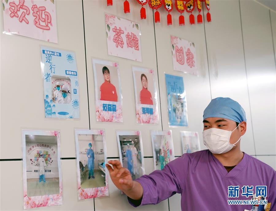5月10日,上海市普陀區(qū)中心醫(yī)院急診重癥監(jiān)護(hù)室的護(hù)士范磊磊站在同事們制作的“榮譽榜”前。這是科室同事為了歡迎他和另一位援鄂護(hù)士平安歸來而準(zhǔn)備的“驚喜禮物”。新華社記者劉穎攝