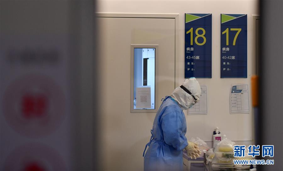 5月11日,在空港醫(yī)院隔離病房,身處“紅區(qū)”的護士準備給處在醫(yī)學觀察的人員送飯。新華社記者李然攝
