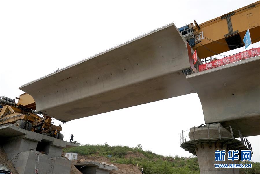 5月13日,運(yùn)架一體機(jī)在位于河南焦作的施工現(xiàn)場(chǎng)進(jìn)行架梁作業(yè)。 當(dāng)日,隨著最后一榀長(zhǎng)24米、重552噸的箱梁架設(shè)就位,太焦高鐵全線橋梁架設(shè)完成。從山西太原到河南焦作的太焦高鐵是國(guó)家規(guī)劃建設(shè)的“八縱八橫”高速鐵路網(wǎng)的重要組成部分,計(jì)劃2020年底建成通車(chē)。 新華社記者李安攝