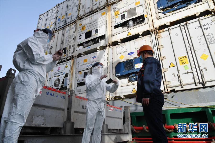 5月13日,山東威海出入境邊防檢查站民警在核對外籍船員證件。面對疫情防控要求,山東威海出入境邊防檢查站嚴(yán)密勤務(wù)組織、強(qiáng)化數(shù)據(jù)研判,加強(qiáng)口岸、碼頭的日常巡查,對國際船舶和船員強(qiáng)化監(jiān)管,全力打好疫情防輸入攻堅戰(zhàn)。據(jù)統(tǒng)計,自2月份以來,威海邊檢站共服務(wù)出入境(港)船舶400余艘次,出入境(港)人員7000多人次,為180多個集裝箱防疫物資提供通關(guān)便利。新華社記者朱崢攝