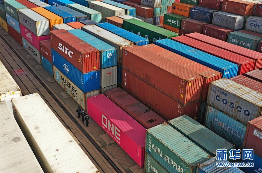 5月13日,山東威海出入境邊防檢查站民警在集裝箱碼頭巡視。新華社記者朱崢攝