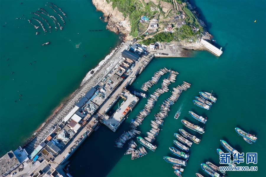 5月13日,休漁漁船停泊在福建省連江縣安凱鄉(xiāng)奇達(dá)村漁港內(nèi)(無人機(jī)照片)。新華社記者姜克紅攝