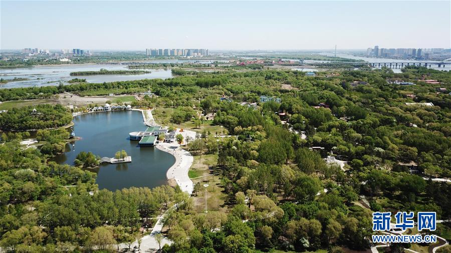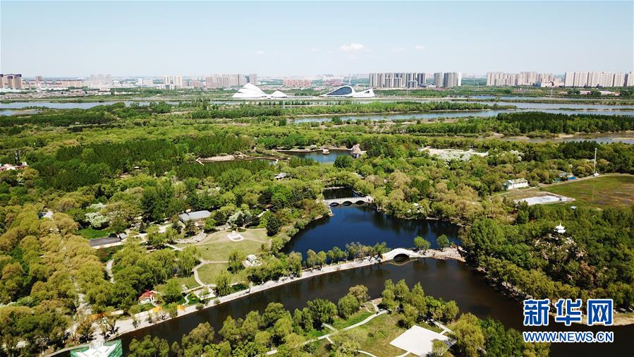 這是5月14日拍攝的哈爾濱大劇院附近的一處濕地(無人機(jī)照片)。時(shí)下,“國際濕地城市”黑龍江省哈爾濱市各處濕地綠意漸濃,展現(xiàn)出“萬頃松江濕地,百里生態(tài)長廊”的壯闊畫卷。新華社記者王建威攝