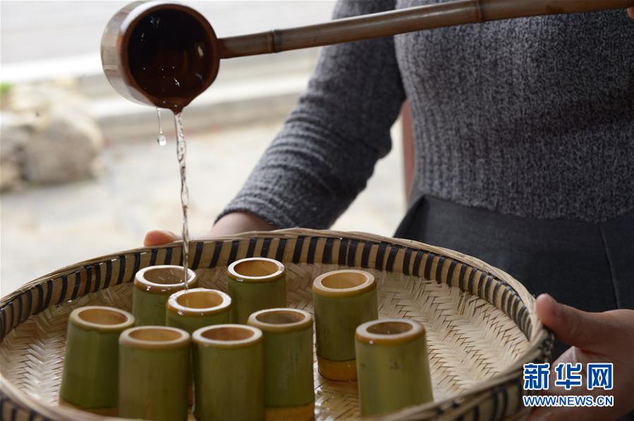 5月14日,在貴州省畢節(jié)市百里杜鵑管理區(qū)黃泥鄉(xiāng)龍?zhí)链逡患揖谱鞣?,村民在品嘗剛出的蒸餾酒。貴州省畢節(jié)市百里杜鵑管理區(qū)黃泥鄉(xiāng)龍?zhí)链宓凝執(zhí)凉啪?,因?dú)特的古法釀酒技術(shù),口感獨(dú)特而遠(yuǎn)近聞名。全村有釀酒戶142戶,年產(chǎn)量達(dá)45萬多公斤,龍?zhí)凉啪七h(yuǎn)銷重慶、廣東、浙江等地,龍?zhí)凉啪埔殉蔀辇執(zhí)寥嗽鍪盏闹匾獊碓?。新華社記者楊楹攝