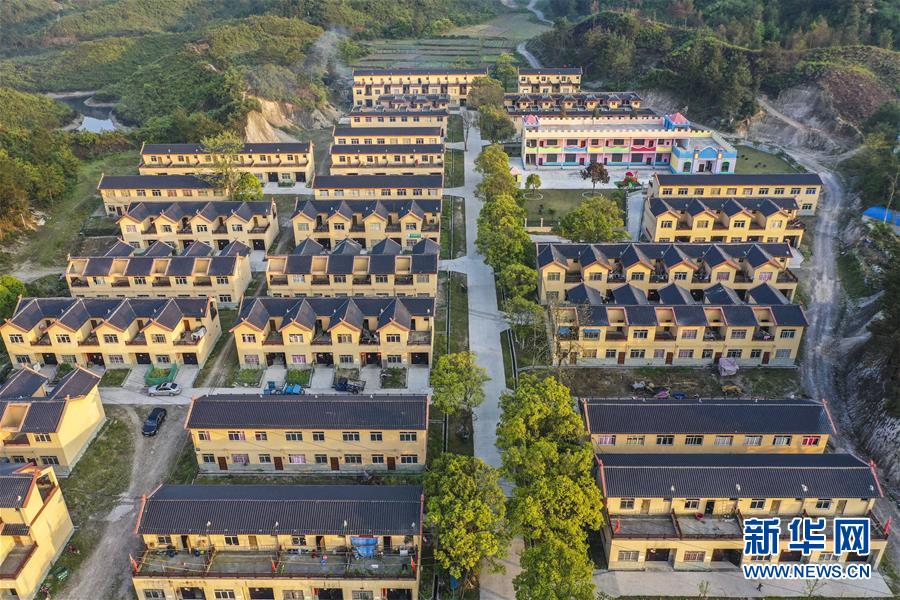 這是廣西南丹縣“千家瑤寨·萬戶瑤鄉(xiāng)”八圩瑤寨易地扶貧搬遷安置點(4月29日攝,無人機照片)。新華社記者周華攝