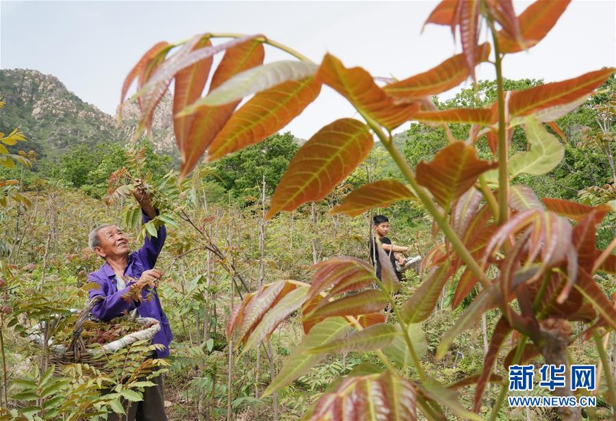 5月17日,秦皇島市撫寧區(qū)王家灣村的村民在自家香椿園采摘香椿芽。近年來,河北省秦皇島市撫寧區(qū)王家灣村村委會(huì)帶領(lǐng)村民在坡嶺荒地種植紅香椿樹1000多畝,綠化了荒坡荒地,增加了農(nóng)民收入。新華社記者楊世堯攝