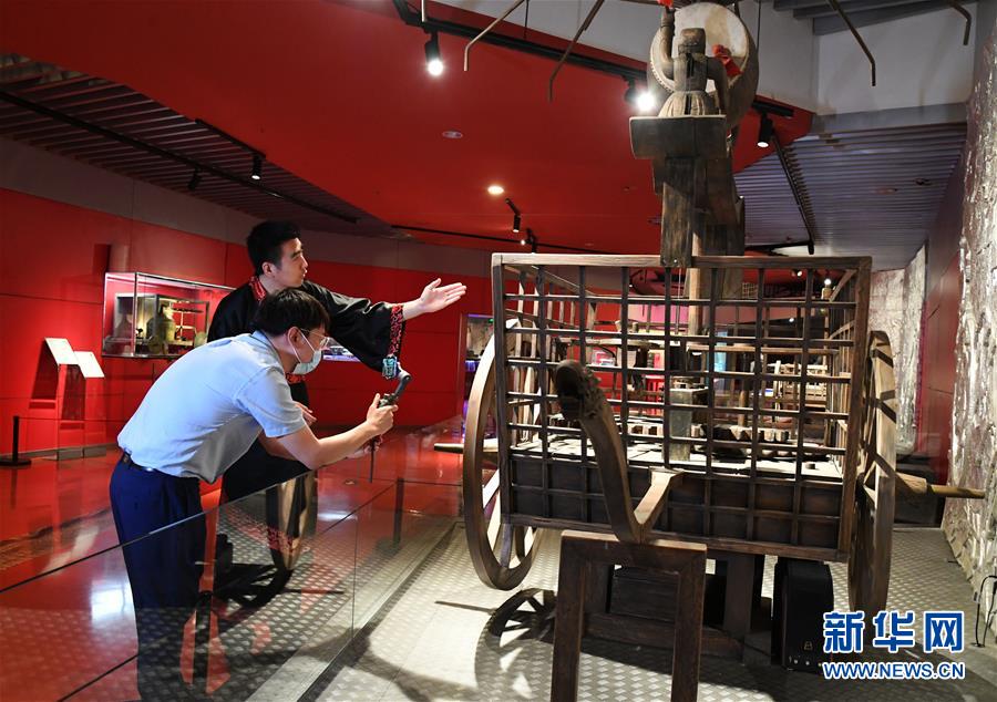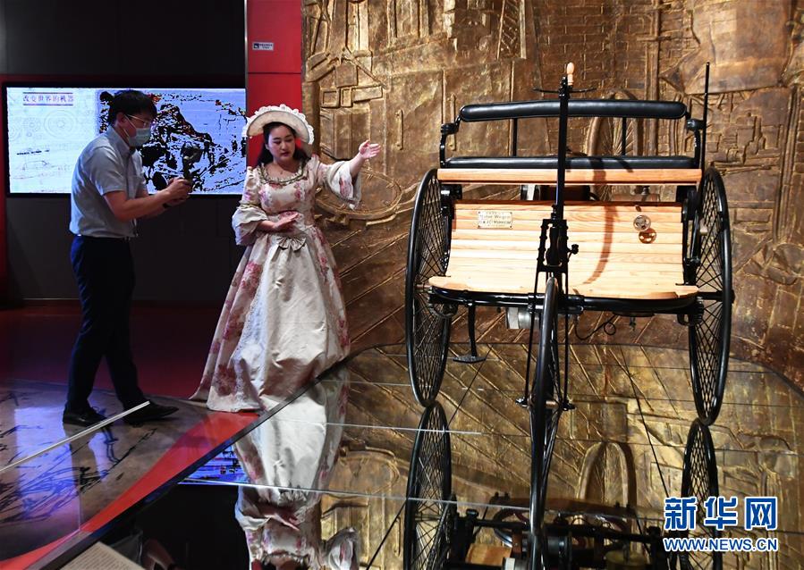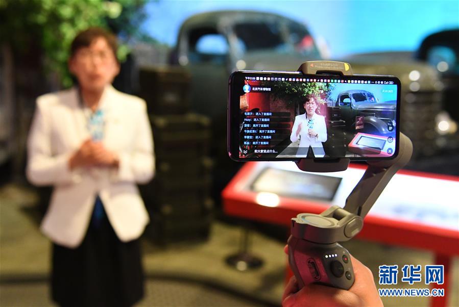 5月18日,在北京汽車博物館,工作人員(左)用講故事的方式通過網(wǎng)絡(luò)直播平臺介紹展品。當(dāng)日是國際博物館日,北京汽車博物館舉辦“帶你穿梭汽車時光”網(wǎng)絡(luò)直播活動,通過網(wǎng)絡(luò)直播平臺對博物館中的藏品車進(jìn)行展示和講解,讓網(wǎng)友足不出戶“云”游北京汽車博物館,了解汽車百年發(fā)展史,感受汽車文化魅力。新華社記者任超攝