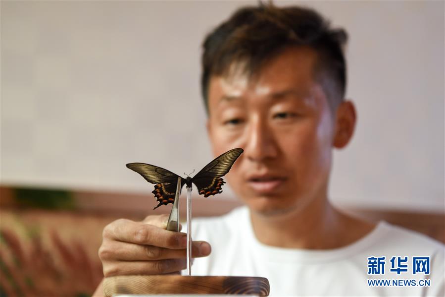 在吉木薩爾縣七彩蝶園,關(guān)富云在制作蝴蝶標(biāo)本(5月15日攝)。走進(jìn)關(guān)富云的七彩蝶園,游客不僅可以近距離接觸翩翩起舞的蝴蝶,還可以欣賞蝴蝶破繭成蝶的蛻變過程。今年34歲的關(guān)富云用9年的時(shí)間實(shí)現(xiàn)了自己的“蝴蝶夢(mèng)”,完成美麗的“蝶變”。關(guān)富云家住新疆吉木薩爾縣北地社區(qū)。2011年,他看到一檔農(nóng)業(yè)致富節(jié)目,萌生了養(yǎng)殖蝴蝶的想法。關(guān)富云說,當(dāng)時(shí)蝴蝶養(yǎng)殖還是一種新興產(chǎn)業(yè),他抱著試一試的想法,在海南學(xué)習(xí)了3個(gè)月蝴蝶養(yǎng)殖,帶回100多個(gè)蝶蛹在家試驗(yàn)養(yǎng)殖。蝴蝶的生存周期短,在當(dāng)?shù)仞B(yǎng)殖需要克服溫度、濕度、病蟲害等問題。關(guān)富云不斷嘗試,越挫越勇,羽化成功的蝴蝶在2014年終于突破了萬只。蝴蝶的色彩艷麗,活體蝴蝶可用于婚慶、開業(yè)慶典等活動(dòng)中放飛,可以取得很好的收益。但它的生命短暫,如何才能最大化蝴蝶的效益,留住它的美呢?關(guān)富云動(dòng)起了心思,開始嘗試制作標(biāo)本和蝶翅畫?!昂宛B(yǎng)殖不同,做蝶翅畫是個(gè)創(chuàng)作的過程,從選擇標(biāo)本到粘貼,每一步都要突出美感。”關(guān)富云介紹,一幅色彩明艷、栩栩如生的蝶翅畫耗時(shí)多日才能完成。如今,關(guān)富云的活體蝴蝶和蝶翅畫通過線上線下銷售,產(chǎn)品還銷往北京、廈門等地。關(guān)富云的蝴蝶產(chǎn)品得到市場(chǎng)的認(rèn)可,政府也對(duì)他給予大力支持。2019年,吉木薩爾縣在泉子街鎮(zhèn)建起蝴蝶觀賞園,吸引了不少游客到此參觀游玩。對(duì)于未來的發(fā)展,關(guān)富云信心滿滿,“我希望把蝴蝶產(chǎn)業(yè)發(fā)展到天山南北,讓人們?cè)诤涞亩疽材苡^賞到蝴蝶,并且讓更多人參與其中,致富脫貧”。新華社記者丁磊攝