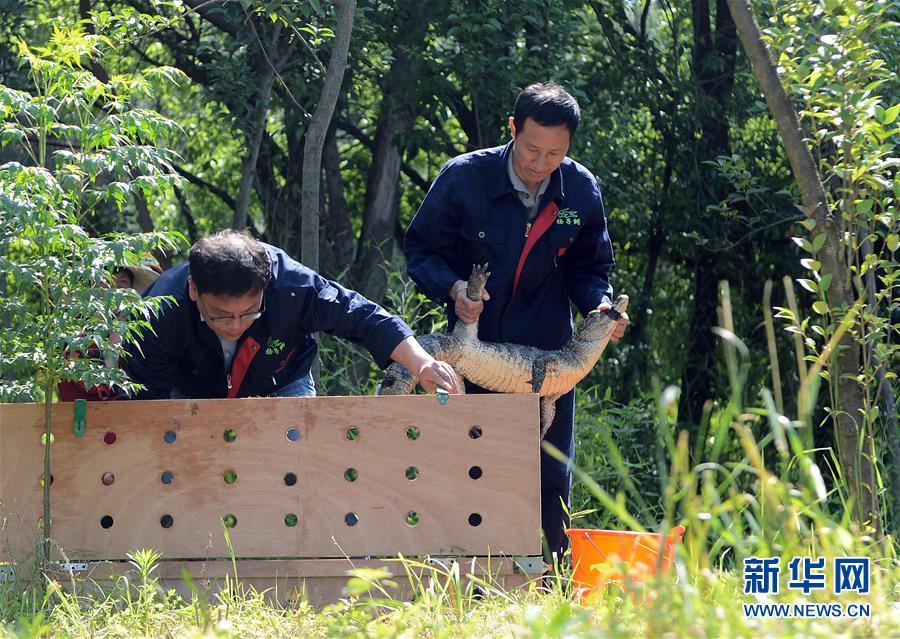 5月20日,工作人員準(zhǔn)備放歸揚(yáng)子鱷。當(dāng)日,安徽揚(yáng)子鱷國(guó)家級(jí)自然保護(hù)區(qū)在安徽多地同時(shí)放歸揚(yáng)子鱷,當(dāng)天共放歸人工繁育揚(yáng)子鱷32條。該保護(hù)區(qū)計(jì)劃2020年野外放歸揚(yáng)子鱷280條,剩余248條將在今后陸續(xù)放歸。新華社記者韓曉雨攝