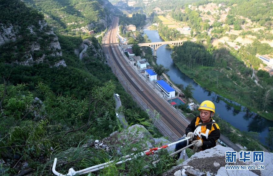 在太行山深處的中國(guó)鐵路鄭州局集團(tuán)有限公司月山工務(wù)段,有一群被稱為捅山工的人。每年汛期來臨前,他們要對(duì)山體進(jìn)行檢查、清理,在懸崖峭壁間“行走”,揮動(dòng)著手中的鋼釬,排除威脅鐵路行車安全的危石。