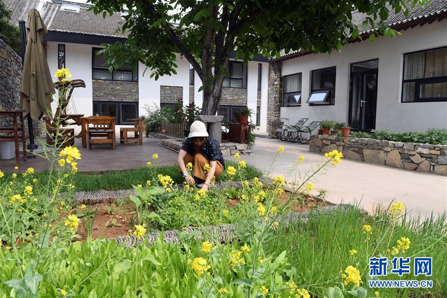 5月20日,游客在天津市薊州區(qū)下營鎮(zhèn)小港村“不知山鄉(xiāng)宿”休閑拍照。新華社記者馬平攝