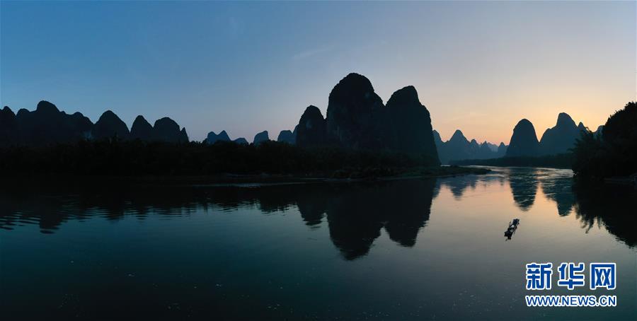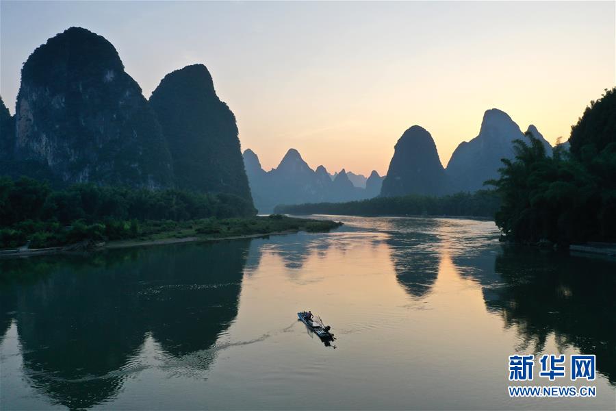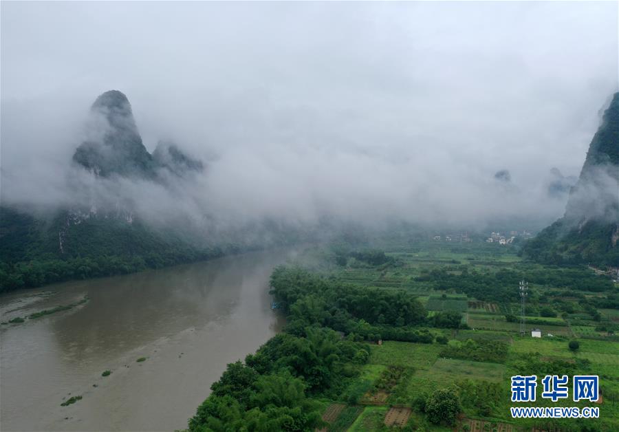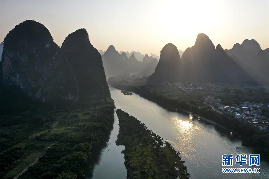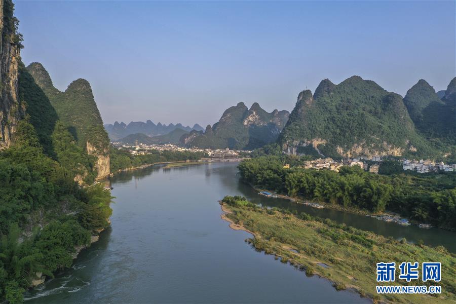 這是在廣西桂林市陽朔縣興坪鎮(zhèn)拍攝的山水風(fēng)光(5月19日攝)?!吧n蒼森八桂,茲地在湘南。江作青羅帶,山如碧玉篸……”一千多年前,唐朝詩人韓愈寫盡桂林山水之美。初夏時節(jié),在廣西桂林市陽朔縣興坪鎮(zhèn),藍(lán)天白云下,煙雨朦朧中,桂林山水盡顯秀美。新華社記者 曹祎銘 攝