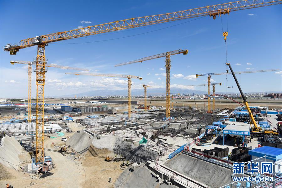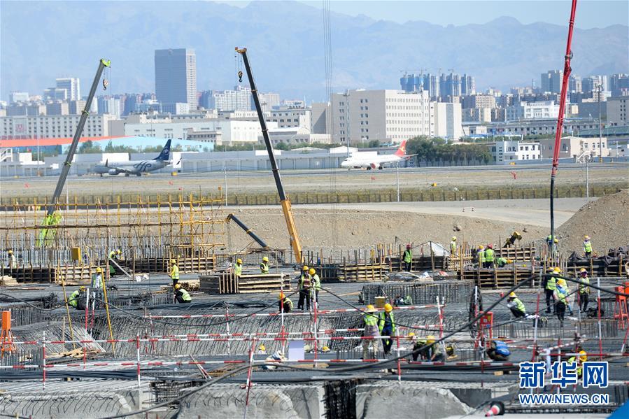5月23日,工人在烏魯木齊機(jī)場改擴(kuò)建工程施工現(xiàn)場作業(yè)。新華社記者丁磊攝
