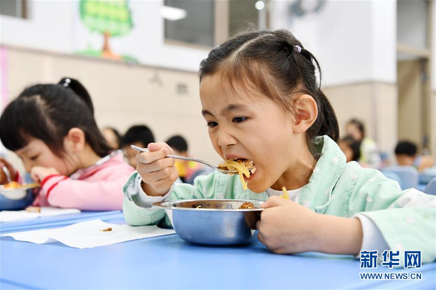 5月25日,貴陽市南明區(qū)苗苗實驗學(xué)校的學(xué)生吃午餐。新華社記者楊文斌攝