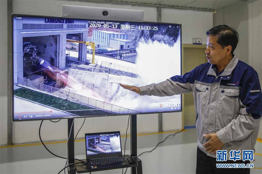 5月26日,藍箭航天技術(shù)有限公司總經(jīng)理杜方平介紹發(fā)動機點火試驗。新華社記者張玉薇攝