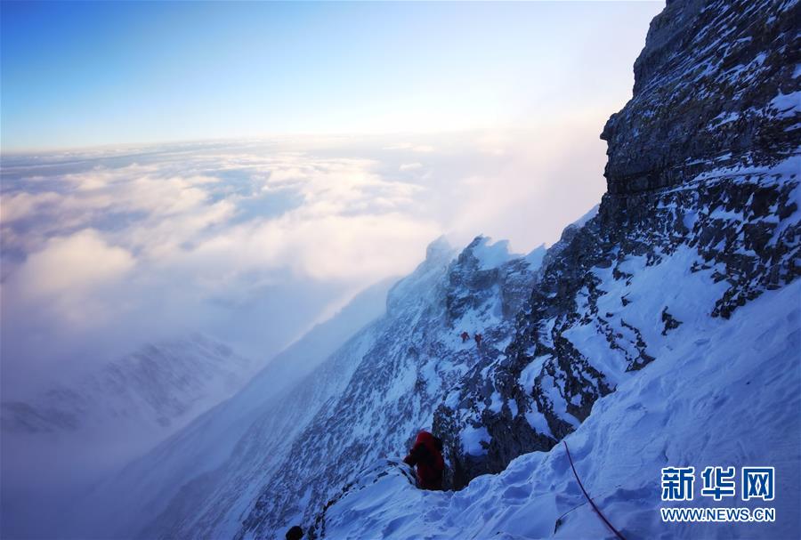 5月27日,2020珠峰高程測量登山隊正在向珠峰峰頂挺進。新華社特約記者扎西次仁攝