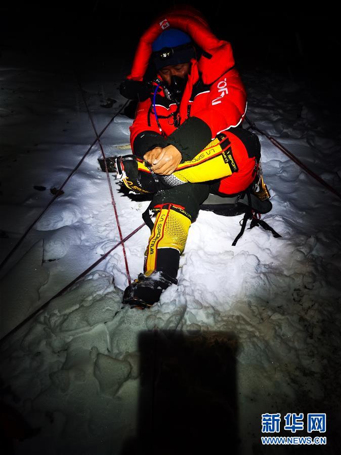 5月27日,2020珠峰高程測量登山隊從海拔8300米的突擊營地出發(fā)。新華社特約記者扎西次仁攝