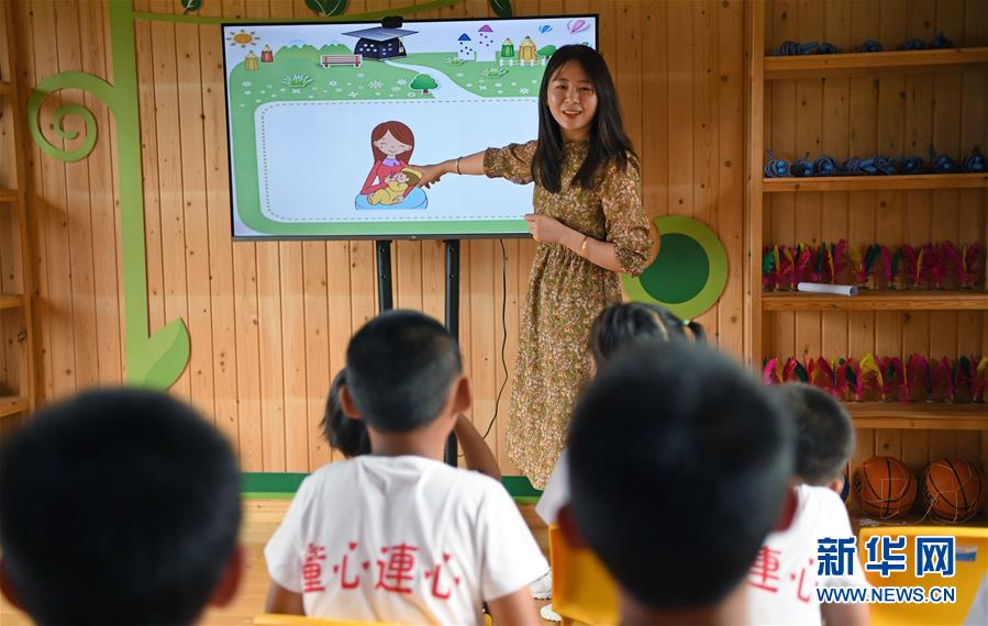 5月27日,在江西省貴溪市金屯鎮(zhèn)金屯村渡坊村小組,志愿者給留守兒童上禮儀課。
