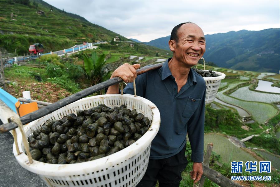 在田螺養(yǎng)殖過(guò)程中,采取“公司+合作社+農(nóng)戶(hù)”的模式,政府統(tǒng)一向龍頭公司采購(gòu)種螺交給合作社,合作社根據(jù)貧困戶(hù)水田規(guī)模和意愿發(fā)放種螺,同時(shí)公司技術(shù)人員入村開(kāi)展養(yǎng)殖技術(shù)培訓(xùn),田螺收獲時(shí)再由合作社對(duì)接種螺公司統(tǒng)一上門(mén)按保底價(jià)回收,解除了貧困戶(hù)養(yǎng)殖和銷(xiāo)售的后顧之憂(yōu),進(jìn)一步拓寬山區(qū)群眾脫貧增收渠道。新華社記者楊文斌攝